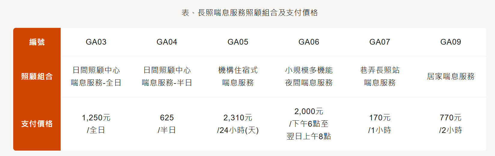 而第4包錢就是喘息服務,家中主要照顧者若需要休息,可以申請喘息服務,包括第一種居家喘息:藉由受過訓練之照顧服務員至個案家中,提供個案身體照顧服務,包含協助如廁、沐浴、穿換衣服、口腔清潔、進食、服藥、翻身、拍背、簡單被動式肢體關節活動、上下床、陪同運動、協助使用日常生活輔助器具及其他服務。