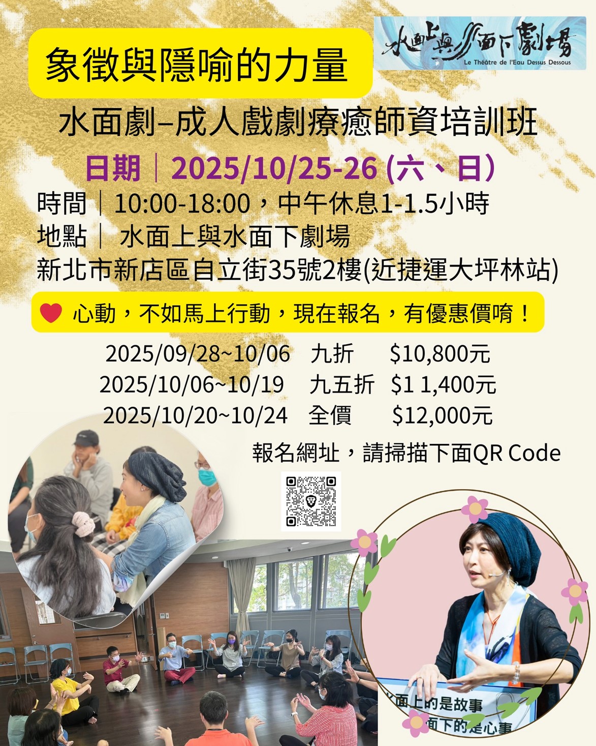 🔹 2025/10月~11月 水面劇愛自己療癒行動公益演講及演出工作坊: https://aquadramatherapy.alldofa.com