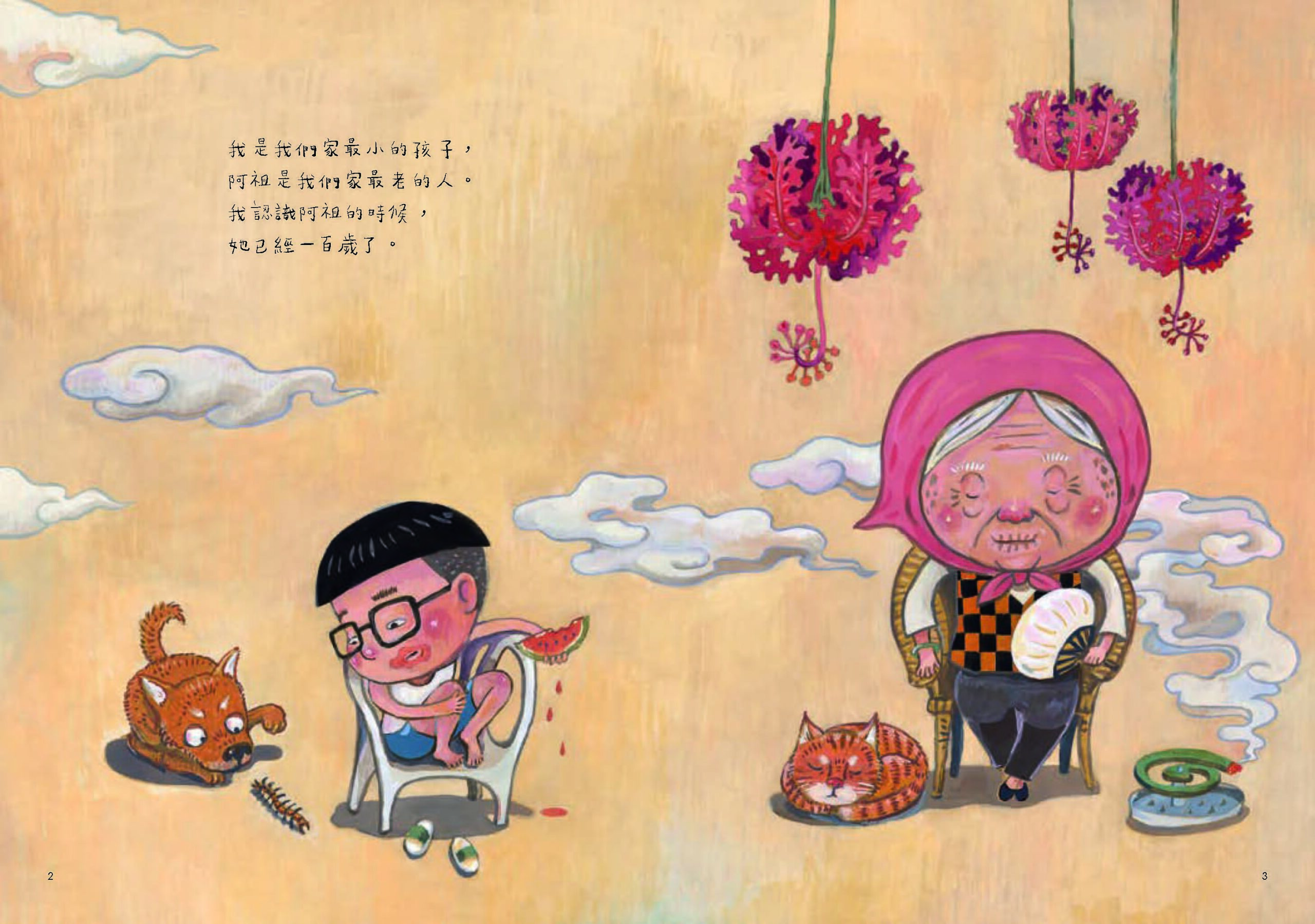 翻開《阿祖的日子紙》,就像翻開阿祖的人生日子,我們進入這個故事。那是關於作者的童年回憶,作者小學時阿祖已經是一百多歲的人瑞了,一百歲到底是一個什麼概念的存在?對未曾了解生死的男孩來說,阿祖是一個激發男孩好奇的陌生親人,一種帶著魔幻感的神祕存在。我們看見男孩對死亡的擔心與好奇,也看見阿祖與死亡並肩的處之泰然。