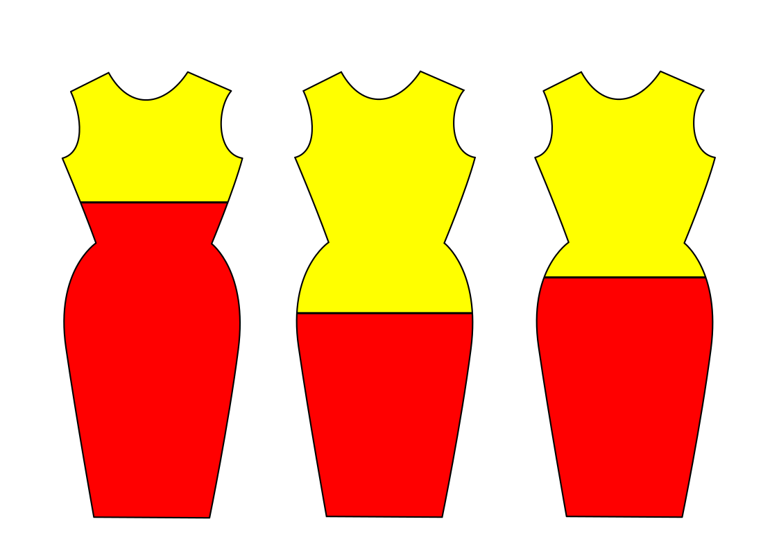 中間圖形最顯臀寬、右邊顯腰細、左邊顯高,可依自己所需調整上衣的止點。圖/崔至覲