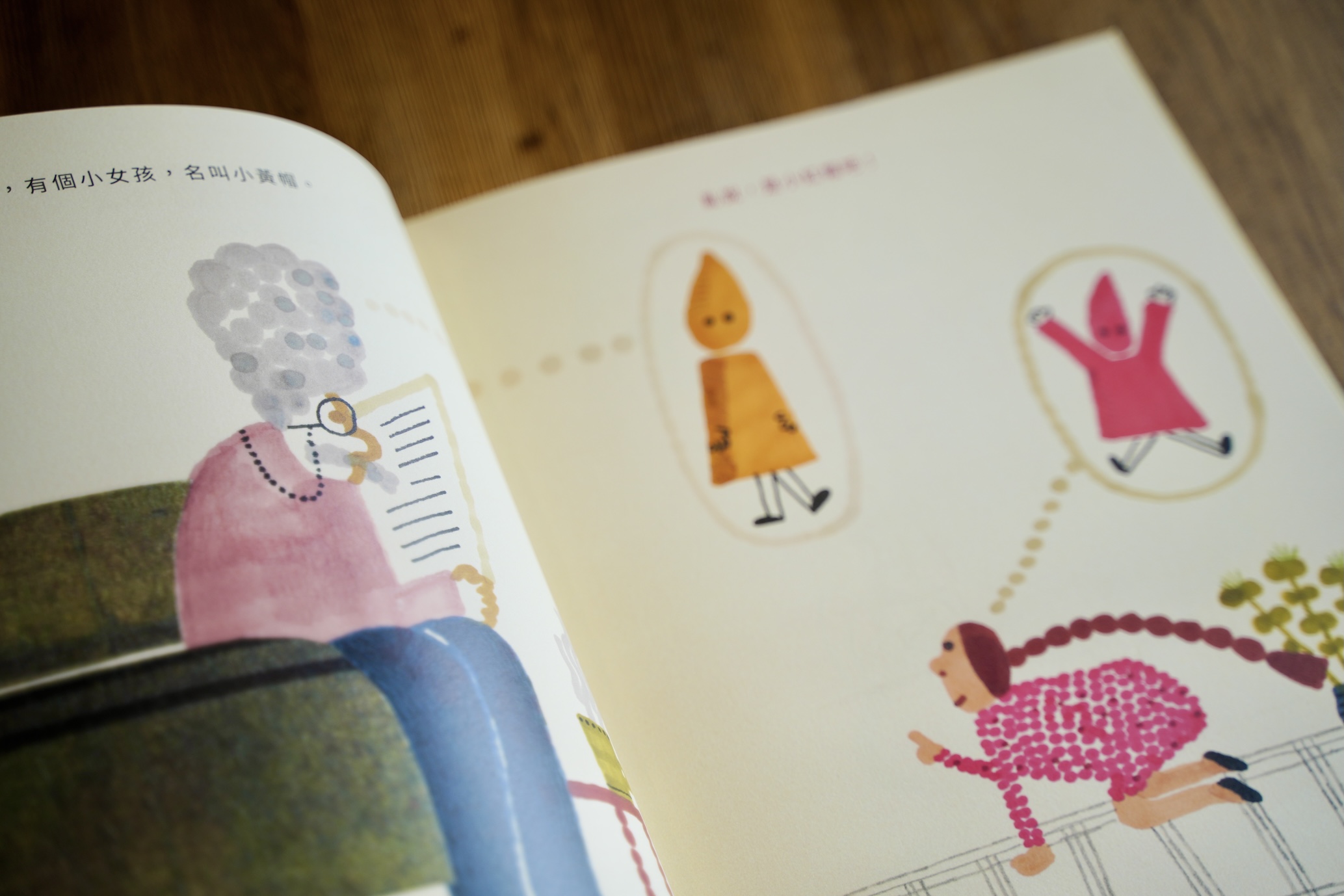 故事裡,小女孩想聽《小紅帽》,但爺爺一邊看報紙、一邊心不在焉地講故事——於是「小紅帽」一下子變成「小黃帽」,一下子變成「小綠帽」;路上遇到的不是大野狼,而是一隻長頸鹿。每當孫女急著糾正錯誤,爺爺卻一本正經地繼續「講錯」,把經典童話說成了一場即興喜劇。
